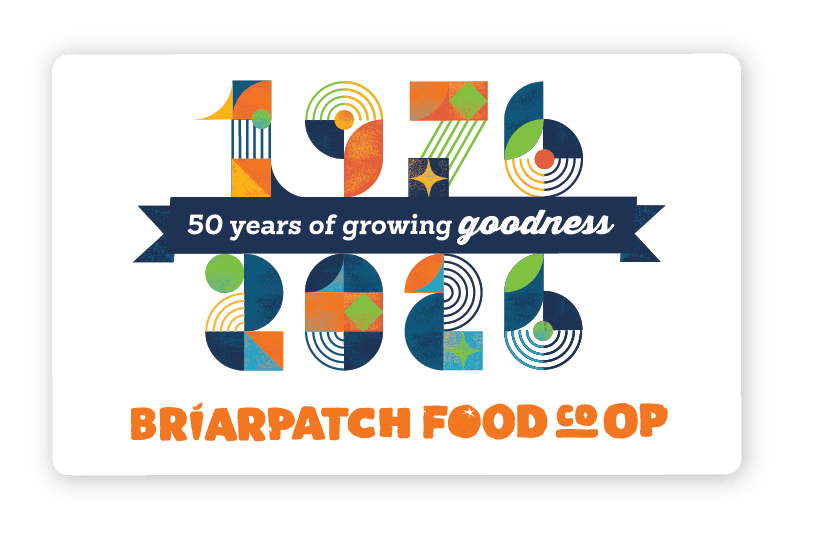 BriarPatch Food Co-op pre-paid cards are a gift that everyone appreciates: your family, friends, co-workers, and even as a donation to your favorite nonprofit group. But they’re not just for gifts — use them yourself and for your family instead of cash for tasty prepared meals and snacks, coffee and drinks from our deli - and of course, groceries! They're convenient and are reloadable in-store.Â